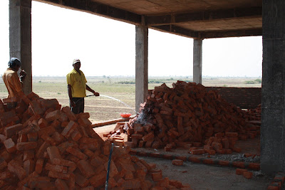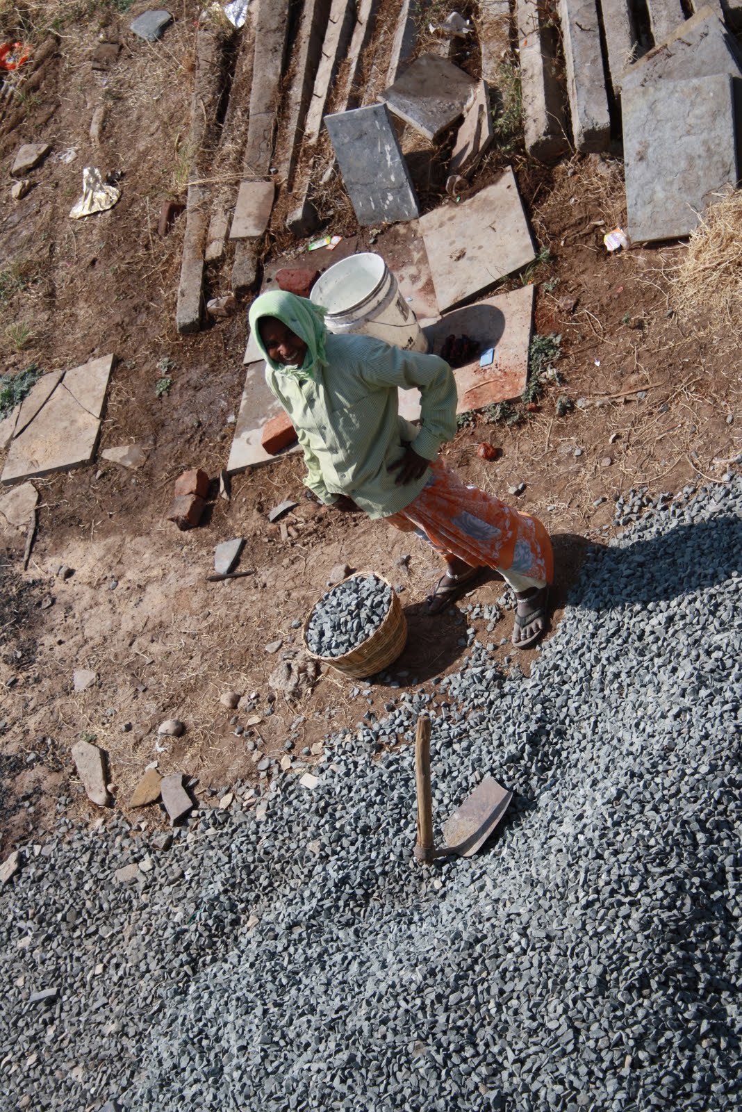 Les dones pugen la grava amb cistells que carreguen al cap.