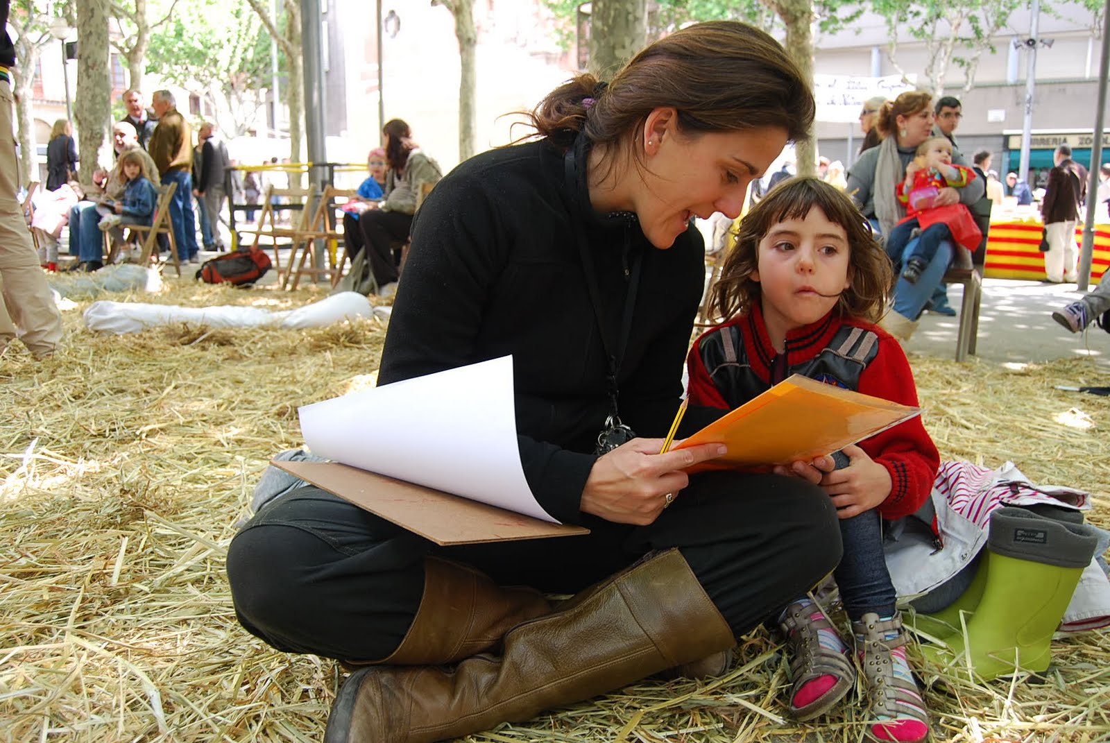 Ell, en veure que la nena mirava amb insistència l’estoig de colors, l’hi va donar junt amb el bloc de dibuix que acabava de tancar i li va dir, agafant-li les mans i mirant-li aquells ulls tan tristos, desitjant provocar-li una espurna d’alegria: