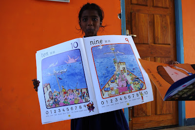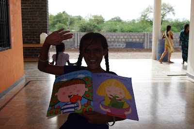Thanks to donations some books have been gathered for the library and everyday the children practice one hour reading. In the evening, volunteers read them a story before going to sleep.