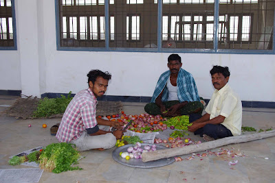 Once the works on the building are finished, next step is the blessing of the building as Hindu tradition stablishes. The ritual, called MEKA in Telgu, is an Hindu ceremony to bless the building and call on good luck. Men gather and kill a goat. With its blood they mark a hand on every wall of the upper part of the building. Afterwards, they make offerings with beer, money, coconut… And to finish, a meal is prepared for all men.