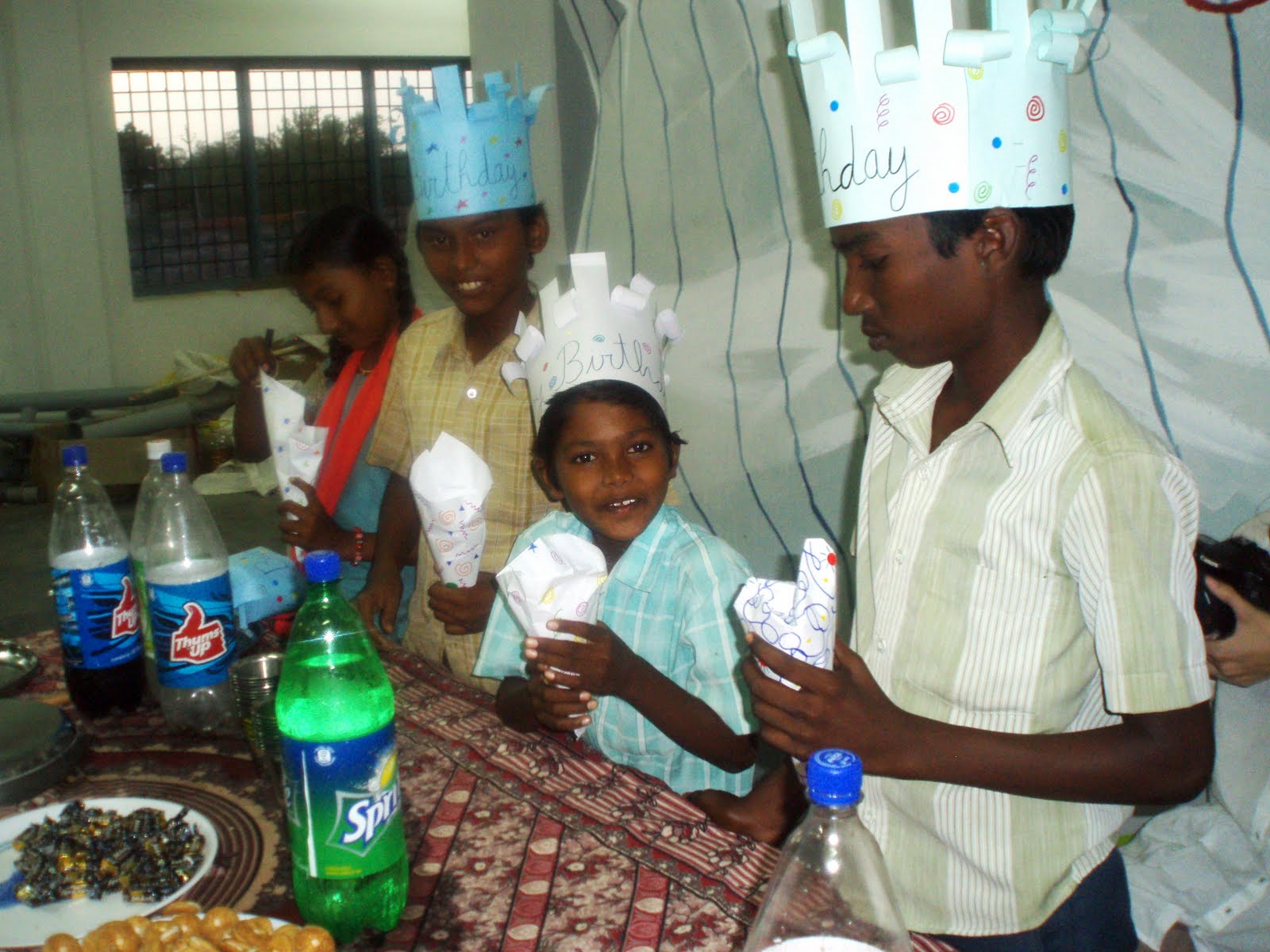 En la India, o quizás sólo en Koilakuntla, no se celebran demasiado los cumpleaños. De hecho, hay gente que no sabe ni su fecha de nacimiento y por tanto no lo celebran nunca. Con los niños del centro se ha eleborado un calendario con todos los cumpleaños de cada mes. A los niños que no sabían la fecha y tampoco constaba en ningún documento, se les dejó escoger un día. De este modo, cada mes hay una fiesta multitudinaria con los niños del centro y del barrio de Swamy Nagar.