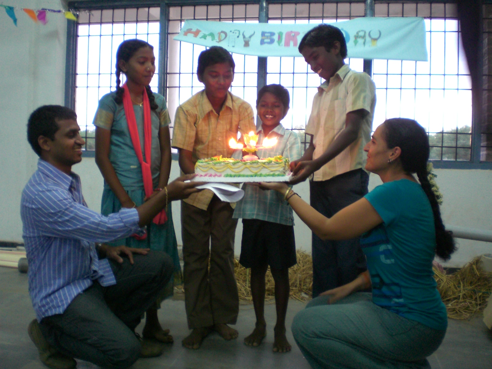A l’Índia, o potser a Koilakuntla, no celebren gaire els aniversaris. De fet, hi ha gent que fins i tot no saben la seva data de naixement i per tant no ho celebren mai. Amb els nens del centre s’ha fet un calendari amb tots els aniversaris de cada mes. Als nens que no sabien la seva data i tampoc constava en cap document, se’ls va deixar escollir un dia. D’aquesta manera, cada mes es a una festa multitudinària amb els nens del centre i del barri de Swamy Nagar.