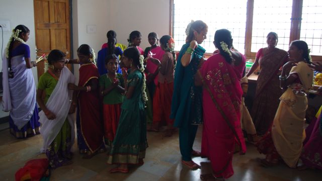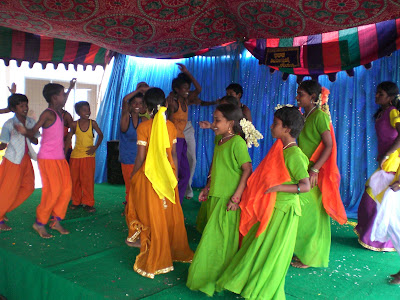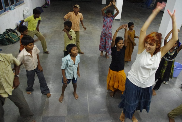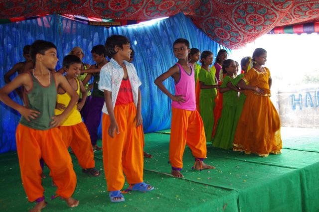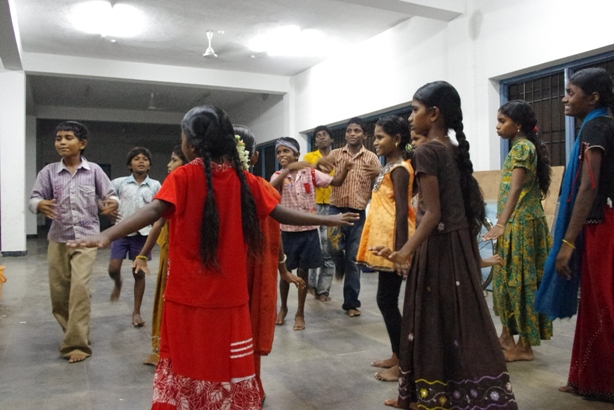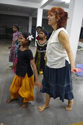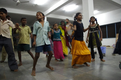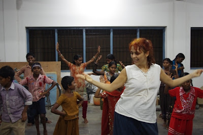With Sara they could dance as much as they wanted, she made the choreographyfor the opening party in Koilakuntla and she prepared the wardrobe. Those children have the rhythm on their blood!
