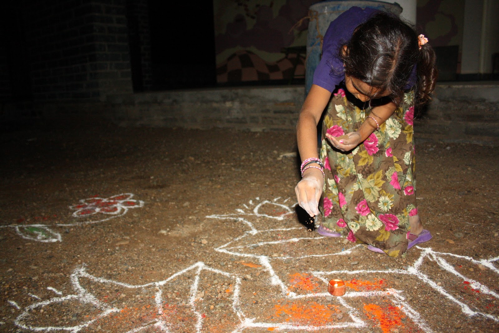 Diwali, también conocido como la fiesta de la luz, es una de las fiestas más importantes del calendario Hindú. Las famílias lo celebran con un conjunto de actividades tradicionales, tales como hacer dibujos de color en el suelo, ir a hacer ofrendas al templo, tirar petardos y fuegos artificiales.
