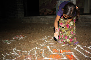 When we were back to Haribala, we made drawings on the patio and played with firecrackers