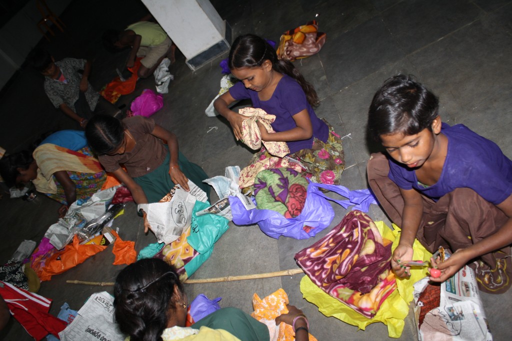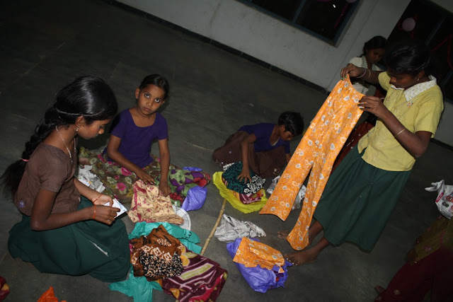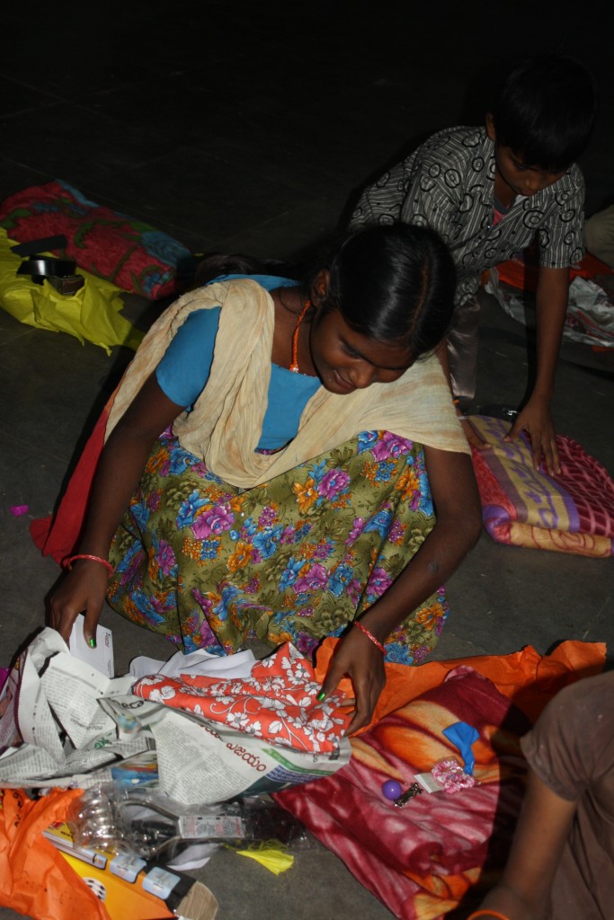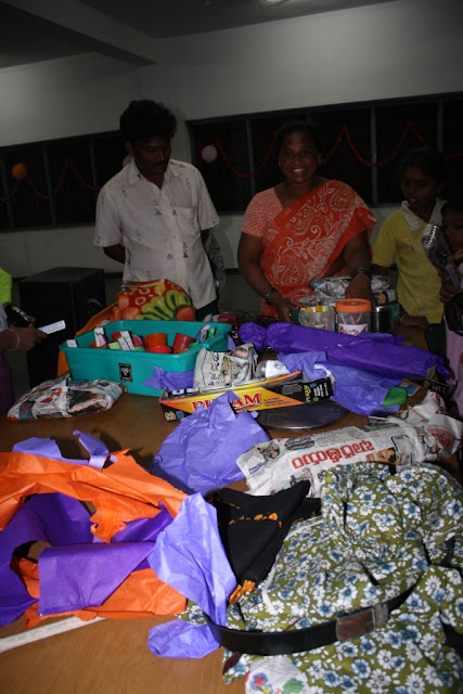 The workers also had their presents, a sari for women and a shirt for