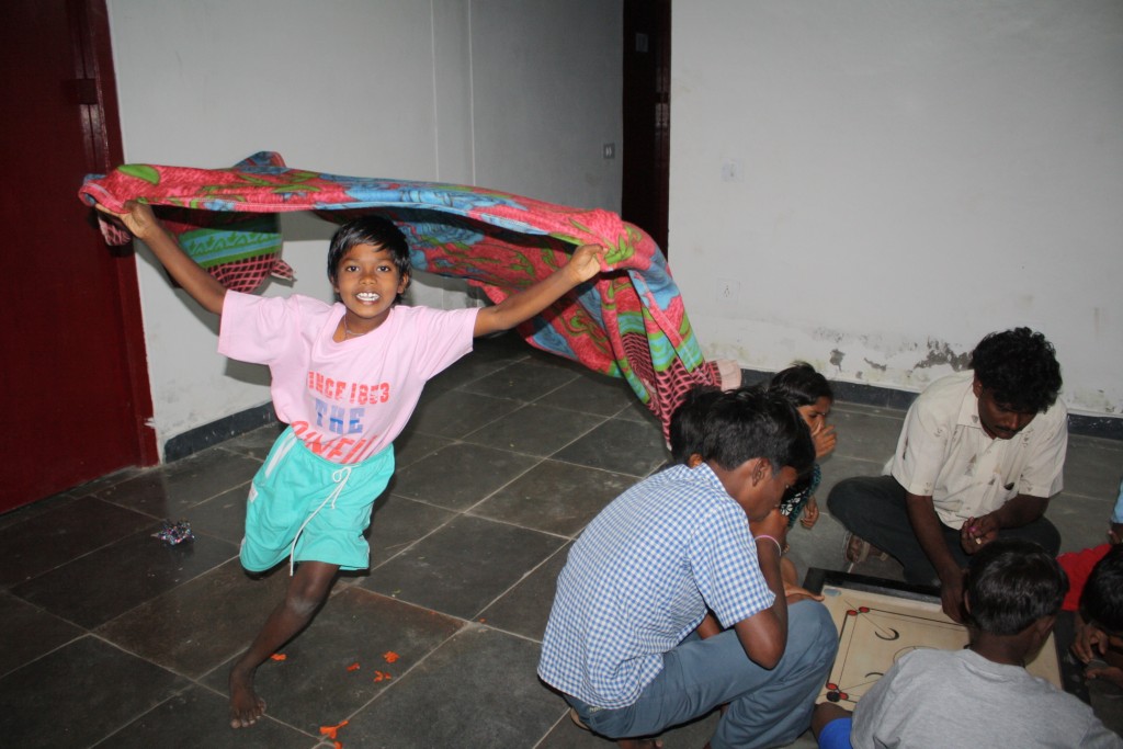 Ara estem a l’época més freda de l’any, el seu hivern és de 20 graus, però ells passen fred, així que els nens van demanar mantes, jerseis… i el tió va ser més generós, a part d’això cada nen va tenir un pijama, gomes pel cavell, cinturons, pilotes de goma i per tots un joc del CARAMBALL, calentadors d’aigua per la dutxa, i un aparell de música per la cuina i el menjador, per poder celebrar les festes, aniversaris… amb la música de les pel.lícules indies que tant els agraden.