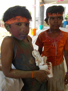 A Haribala no varem ser menys, vam comprar dues escultures (ja que la primera s’ens va trencar i diuen que porta mala sort), vam fer guerres de colors i les vam portar cap al riu cantant lemes de Ganesha.