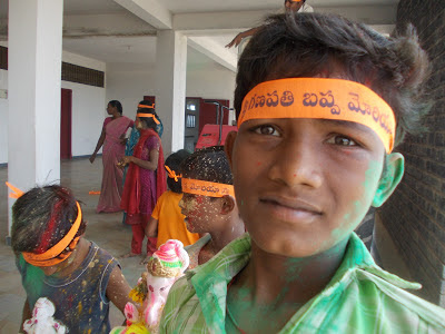 In Haribala we bought two sculptures (because the first broke and they say it’s bad luck), we did color wars and took the sculpture to the river chanting slogans of Ganesha.