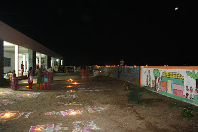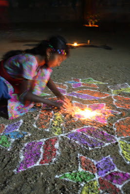 Durante el Diwali, celebrado una vez al año, la gente estrena nuevas ropas, comparte dulces y hace explotar petardos y fuegos artificiales. Es la entrada del nuevo año hindú, y una de las noches más significativas y alegres del año..En Haribala lo hemos celebrado un año mas, con un día completo de actividades. Hicimos un jeringazo de colores, dibujos en el suelo con pigmentos, comimos pasteles y a la noche, nos divertimos mucho con los petardos!