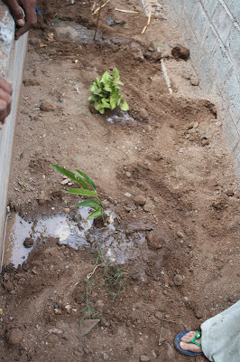 Siguiendo con la plantación de árboles, tuvimos que esperar a poder plantar los árboles frutales en el patio trasero hasta que no hubo puesta una valla para que los búfalos del pueblo no se comieran los pequeños árboles. A lo largo del patio a ambos lados hemos plantado los árboles frutales que se regarán con las aguas almacenadas en un tanque de aguas pluviales, durante la época de lluvias. Son de 9 especies diferentes, para tener variedad Durante todo el año, muchas de ellas son autóctonas de la zona desconocidas para nosotros.Mango, Papaya, Coco, Platan, Limas, Sapota, Jama, Danima, Sini-Batay. El Ayuntamiento de Koilakuntla tiene un vivero de árboles que no son frutales y nos ha dado 54 árboles que hemos plantado al final del patio. Le hemos puesto el nombre de BOSQUE DE HARIBALA y servirá para tener sombra y los niños puedan colgar sus columpios y lianas, y puedan jugar tranquilamente sin tener que sufrir el sol castigador del mediodía y la tarde. Esperamos que todos estos árboles crezcan para dar sombra y frutos a todos los niños y niñas que vivirán en el futuro centro de acogida, y continuar reduciendo siempre que sea posible huella ecológica. El Centro de Acogida de Koilakuntla siempre intenta tener el mínimo impacto sobre el medio ambiente, y es un tema que se habla con los niños y niñas del centro, sobre la importancia de no contaminar, de tratar los residuos, de re-aprovechar las aguas, de plantar árboles y flores, de respetar el entorno y los animales que viven en el.
