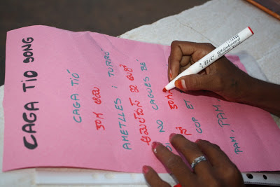Els nens i nenes del centre van buscar el TIÓ entre els troncs que utilitzen les cuineres per cuinar amb llenya, van pintar cares i van fer un concurs per triar la millor cara pel TIÓ d’aquest any.