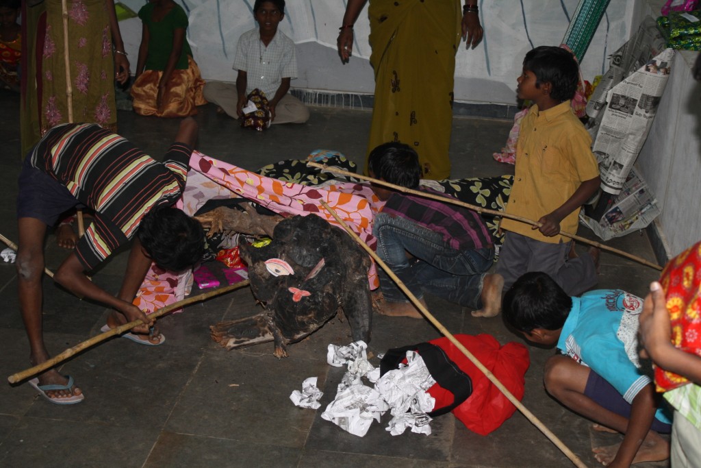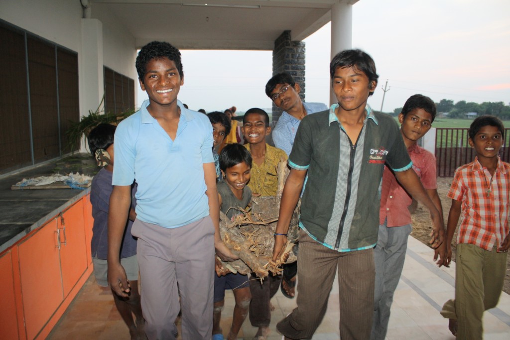 Each kid made their own customised TIO painting different faces and then we decided wich one was the winner for this year. They got the trunks from the same wood that we use for cooking in Haribala´s kitchen.