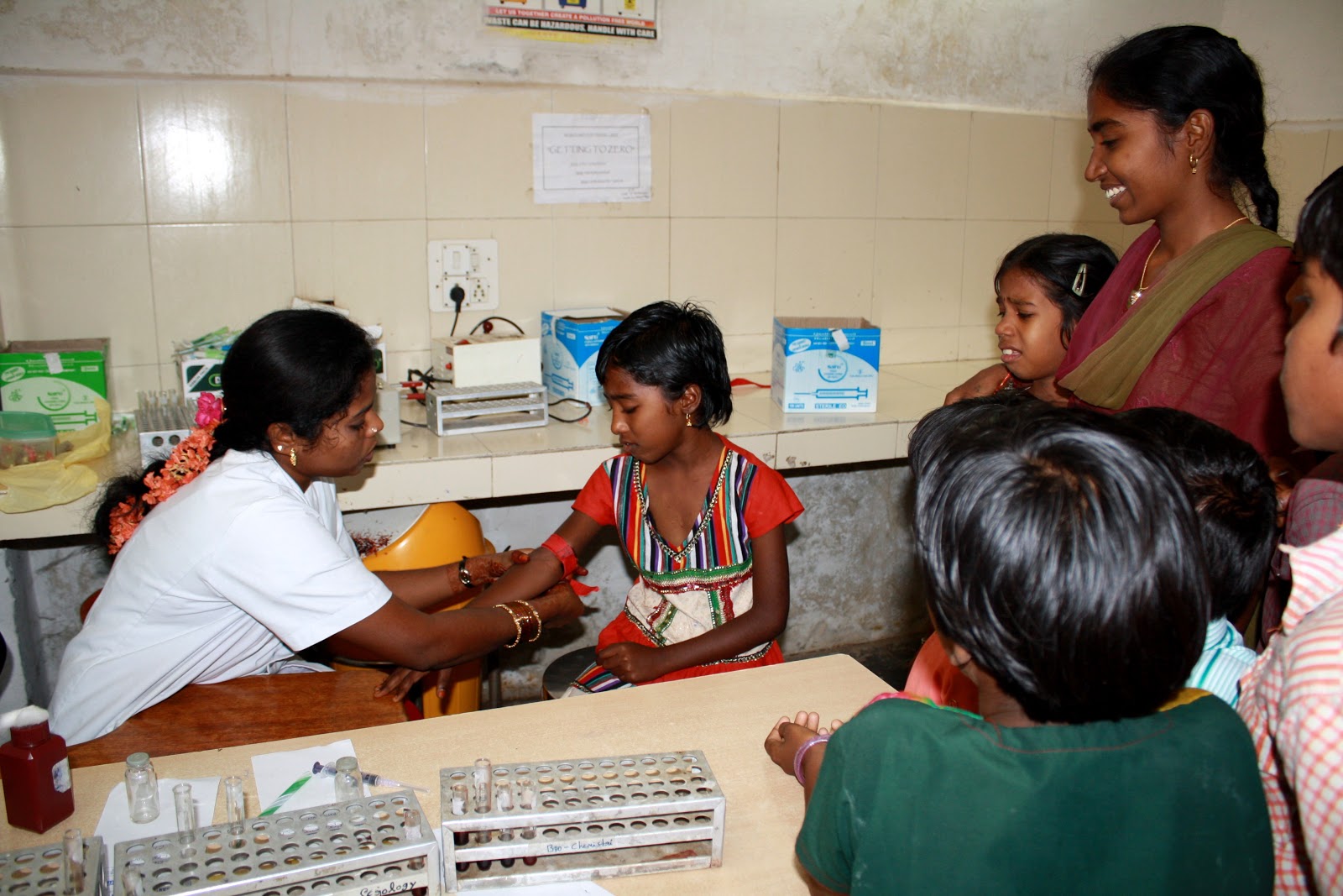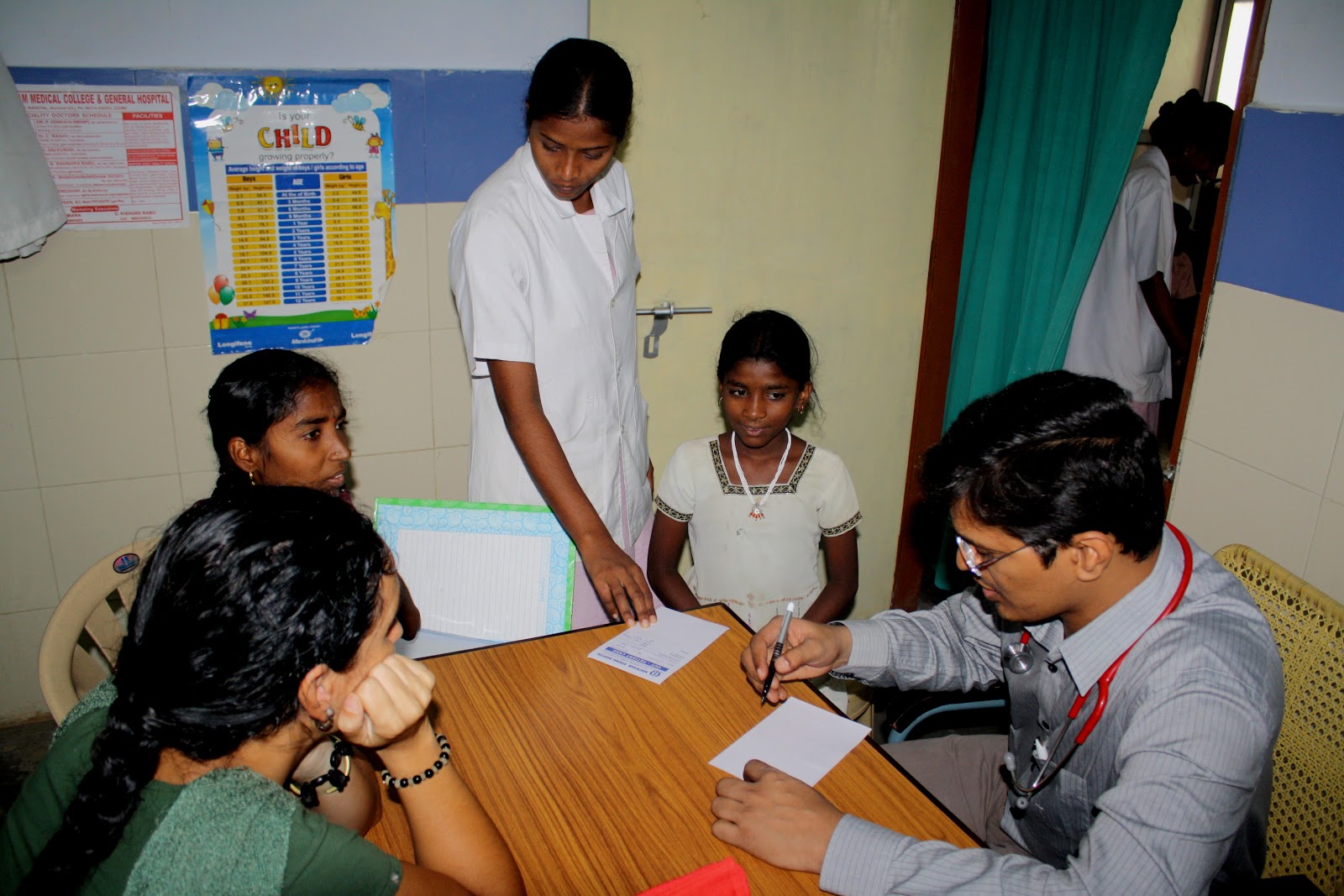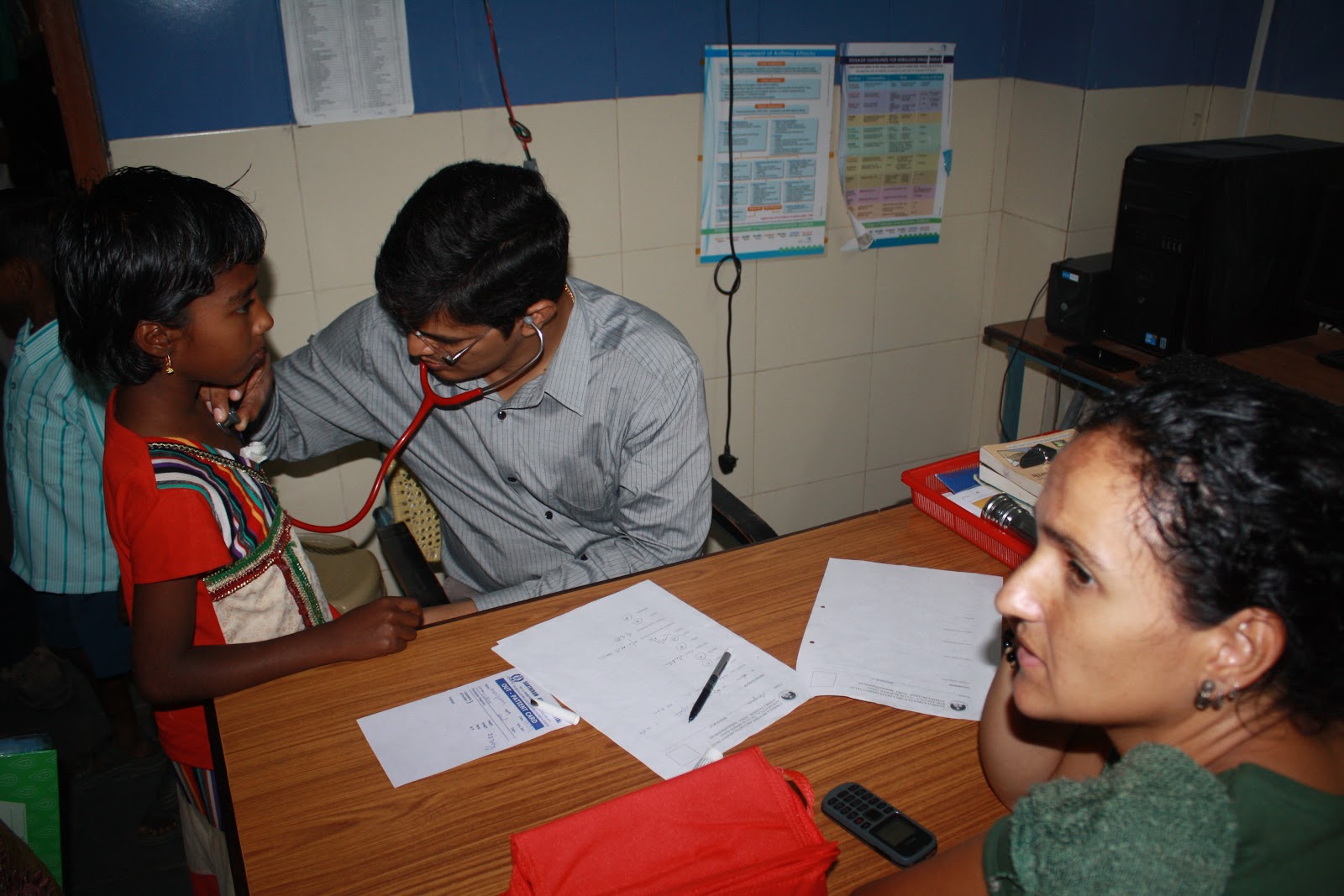 Cada año los niños del centro de acogida pasan una revisión médica, el Hospital Shantiram de Nandyal colabora con nosotros desde hace más de un año con estas revisiones y con un Campamento médico que hacemos cada año en las instalaciones del Centro para ofrecer estas mismas revisiones a todos los niños y niñas apadrinados.