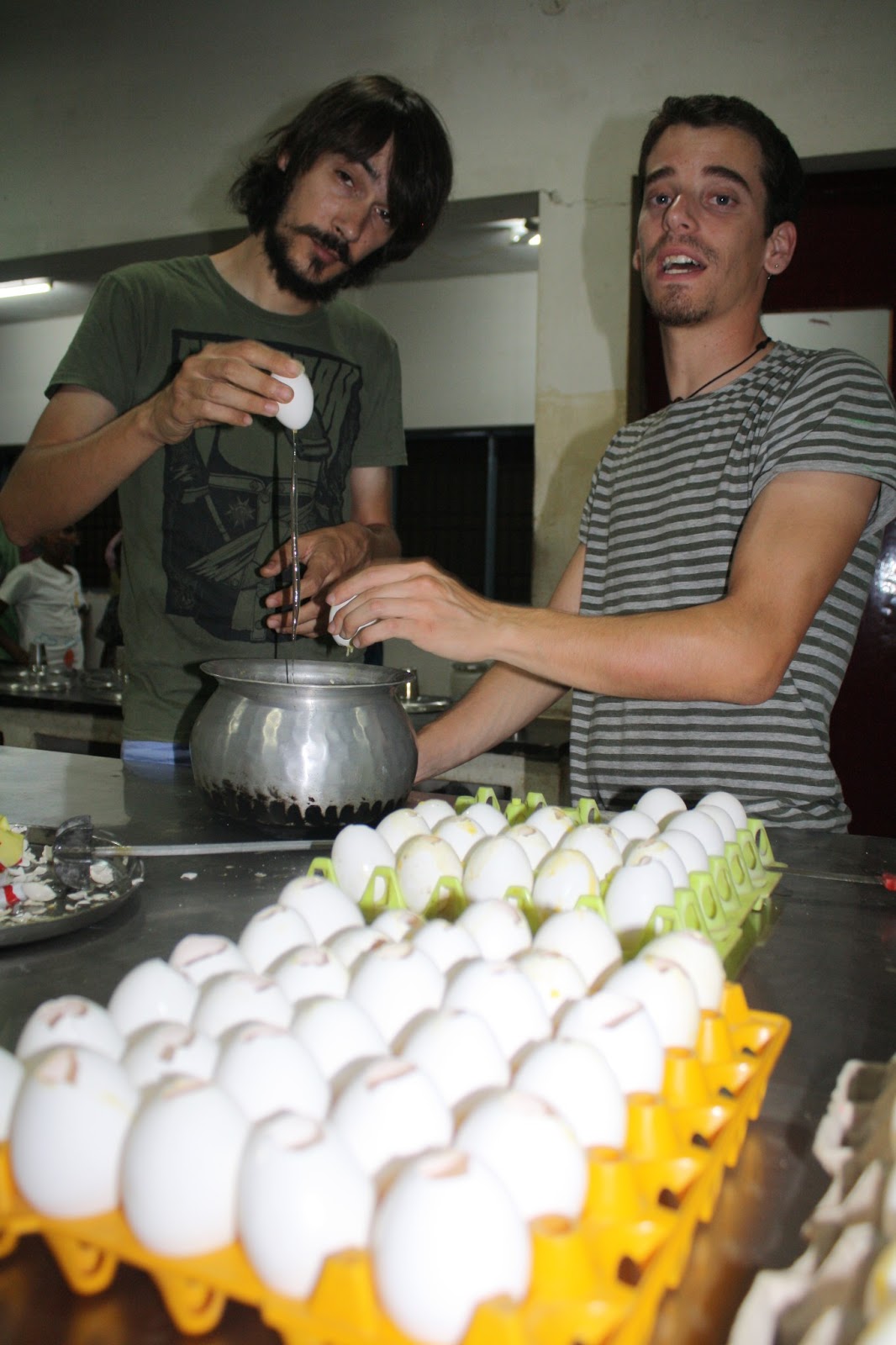 Todos los voluntarios junto con Montse, organizaron la celebración de carnaval en el centro, todos nos disfrazamos utilizando vasos, tapones y todo lo que nos encontrábamos. De menú, tuvimos tortilla y crepes de chocolate.