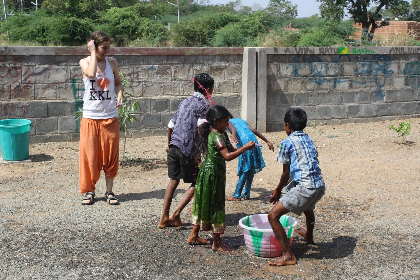 Lo celebramos jugando con globos de agua y bailando música India. Finalmente por la noche quemamos al rey del carnaval antes de ir a dormir.