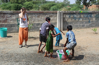 David is in charge of the computers room. Dèlia is working in the enlargement of the farm. Carla, Sergi and Jordi are working in their university project; a documentary that consists in filming different interviews within Haribala, the schools and the villages around the Swamy Nagar area. Also, they are helping in the after class tuition, teaching english, science and maths.
