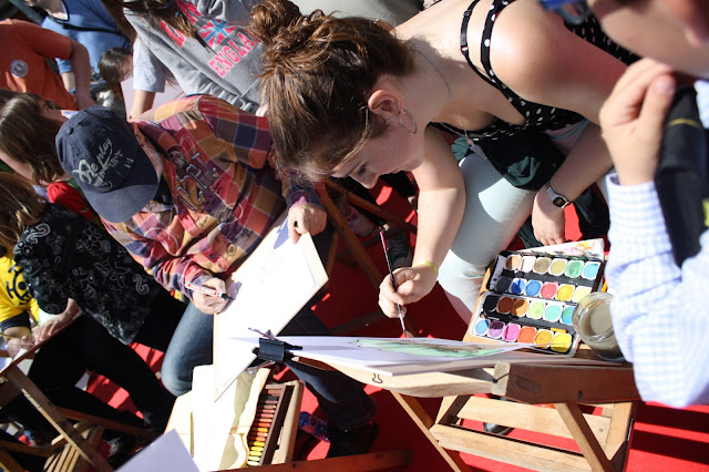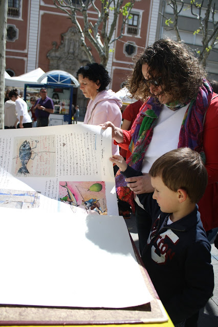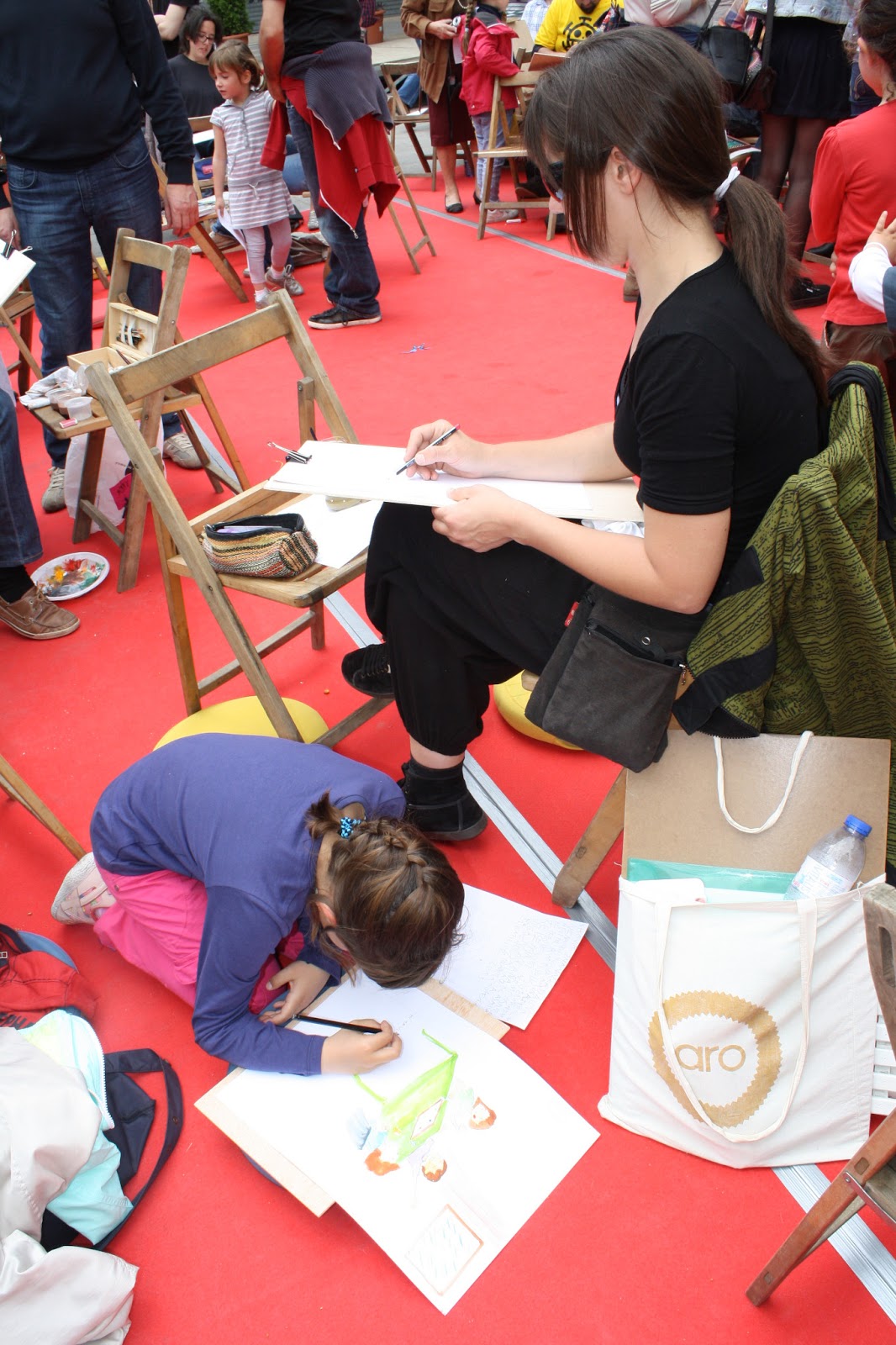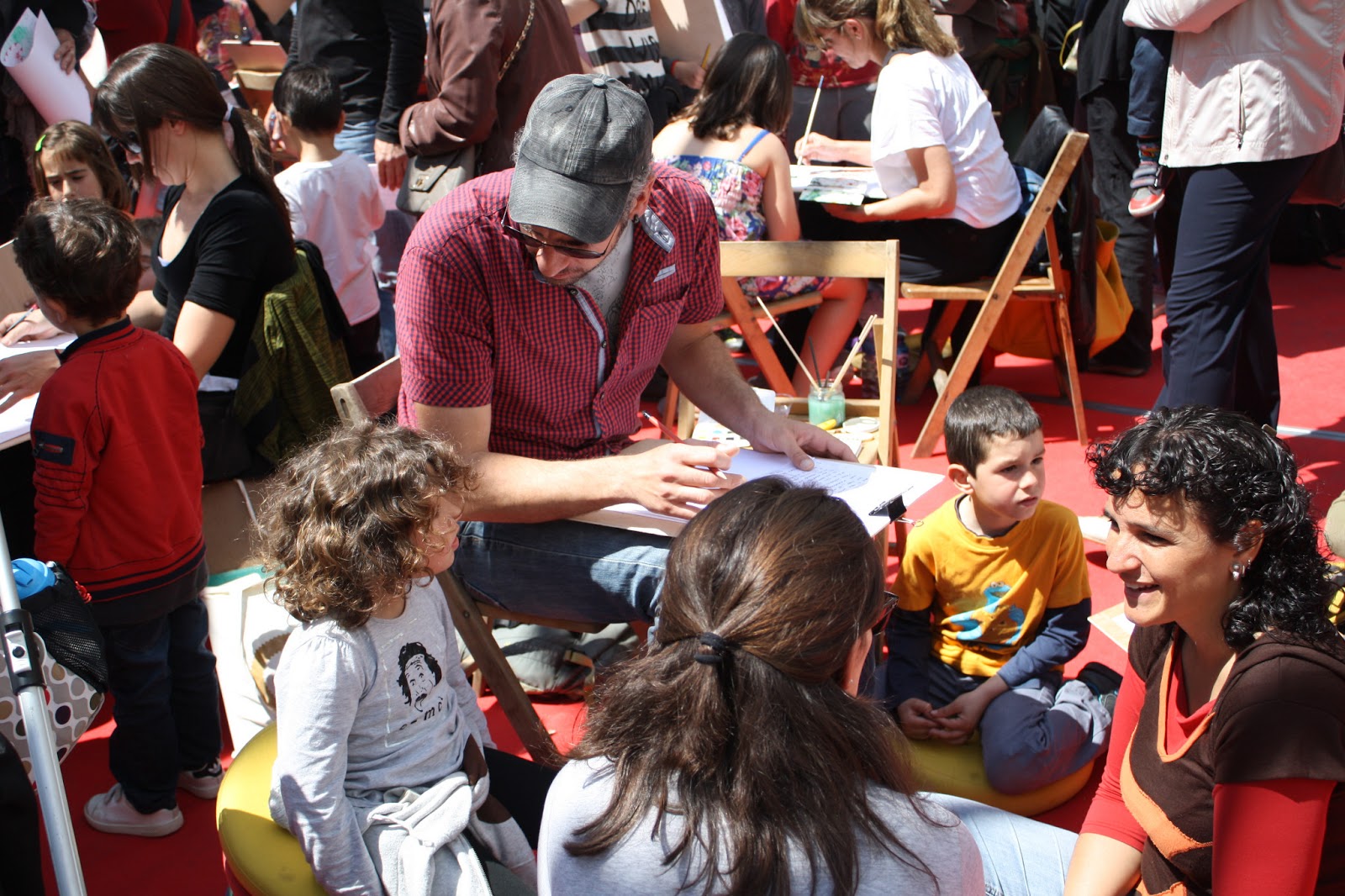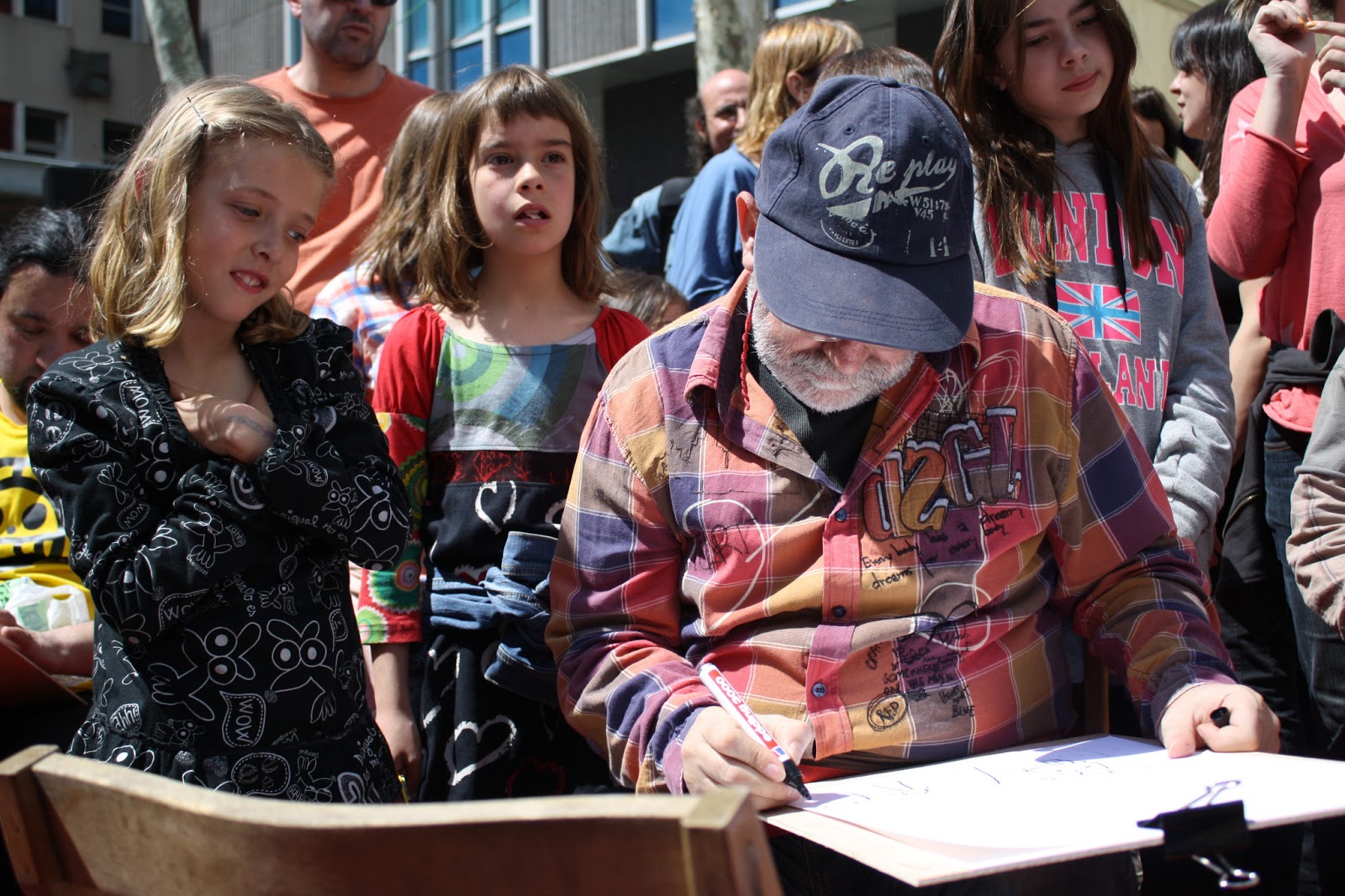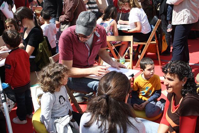 Allí un grupo de ilustrador@s hacen un dibujo sobre el cuento
