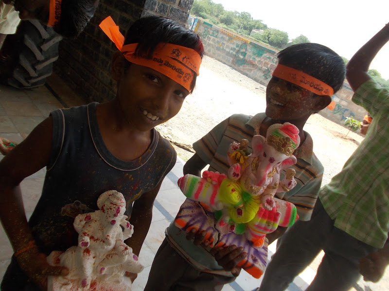 In Haribala we bought two sculptures (because the first broke and they say it’s bad luck), we did color wars and took the sculpture to the river chanting slogans of Ganesha.